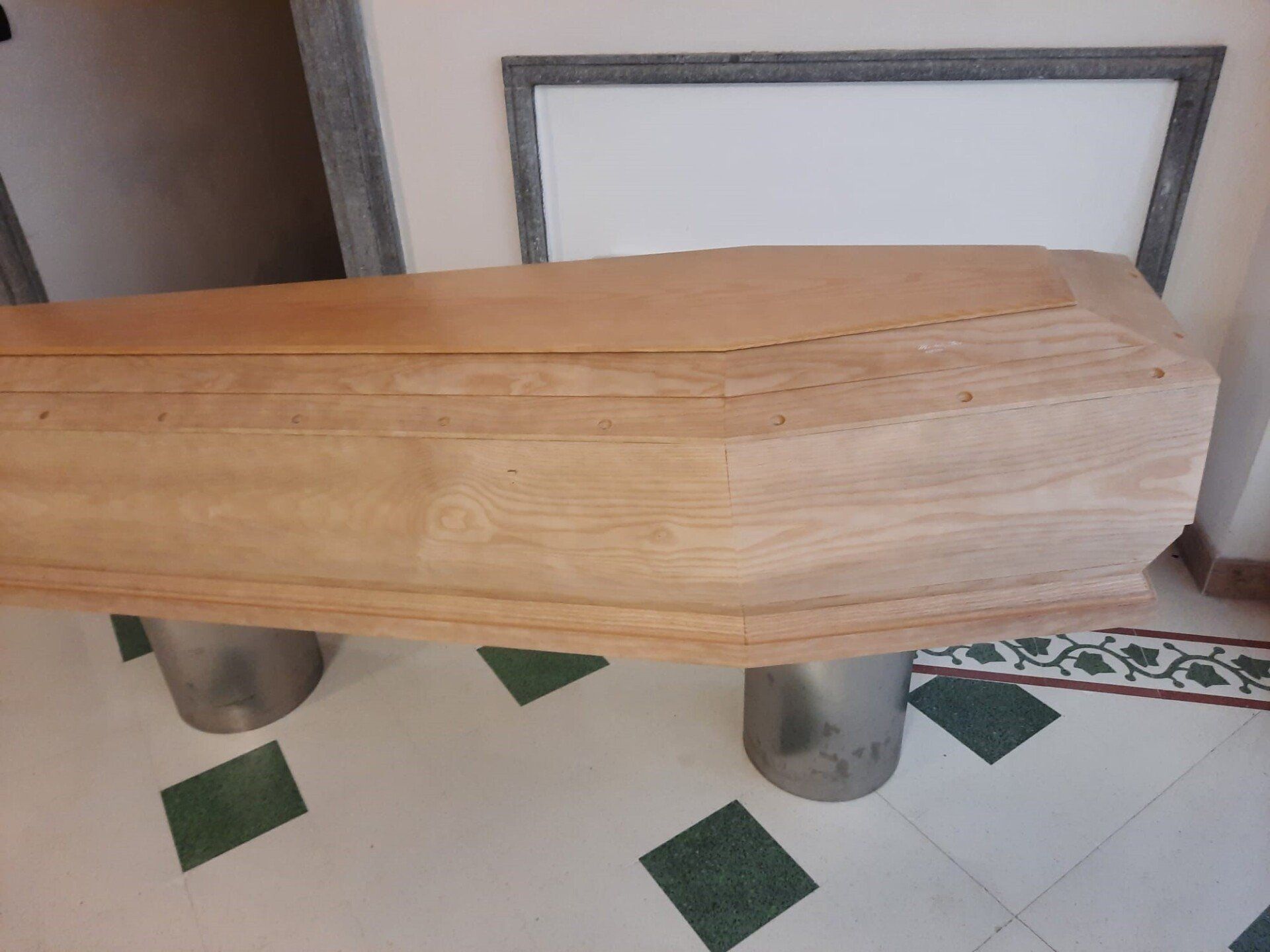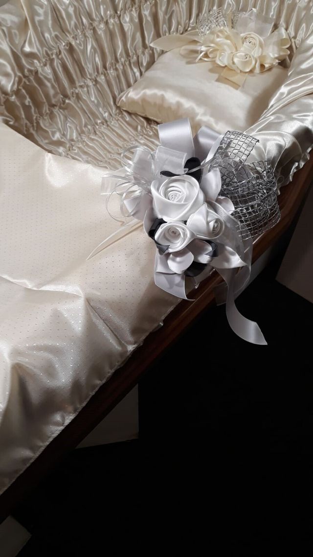 Per l’allestimento della camera ardente vengono utilizzati addobbi discreti e raffinati, tra cui catafalchi a sostegno della bara, paraventi, immagini sacre e lampade votive.